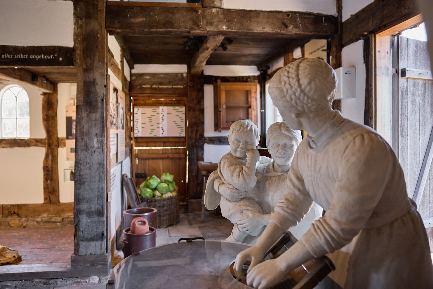 Im Zieglerkotten wird demgegenüber die Perspektive der Frauen der Wanderziegler gezeigt, die zusammen mit den Kindern in Lippe verblieben. Sie trugen die Verantwortung für die Familie und ihre Versorgung, indem sie in der Landwirtschaft arbeiteten und große Gemüsegärten bewirtschafteten.